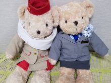 航空業界同士のカップルの結婚式では、制服のくまさんが受付に飾ってあったりと